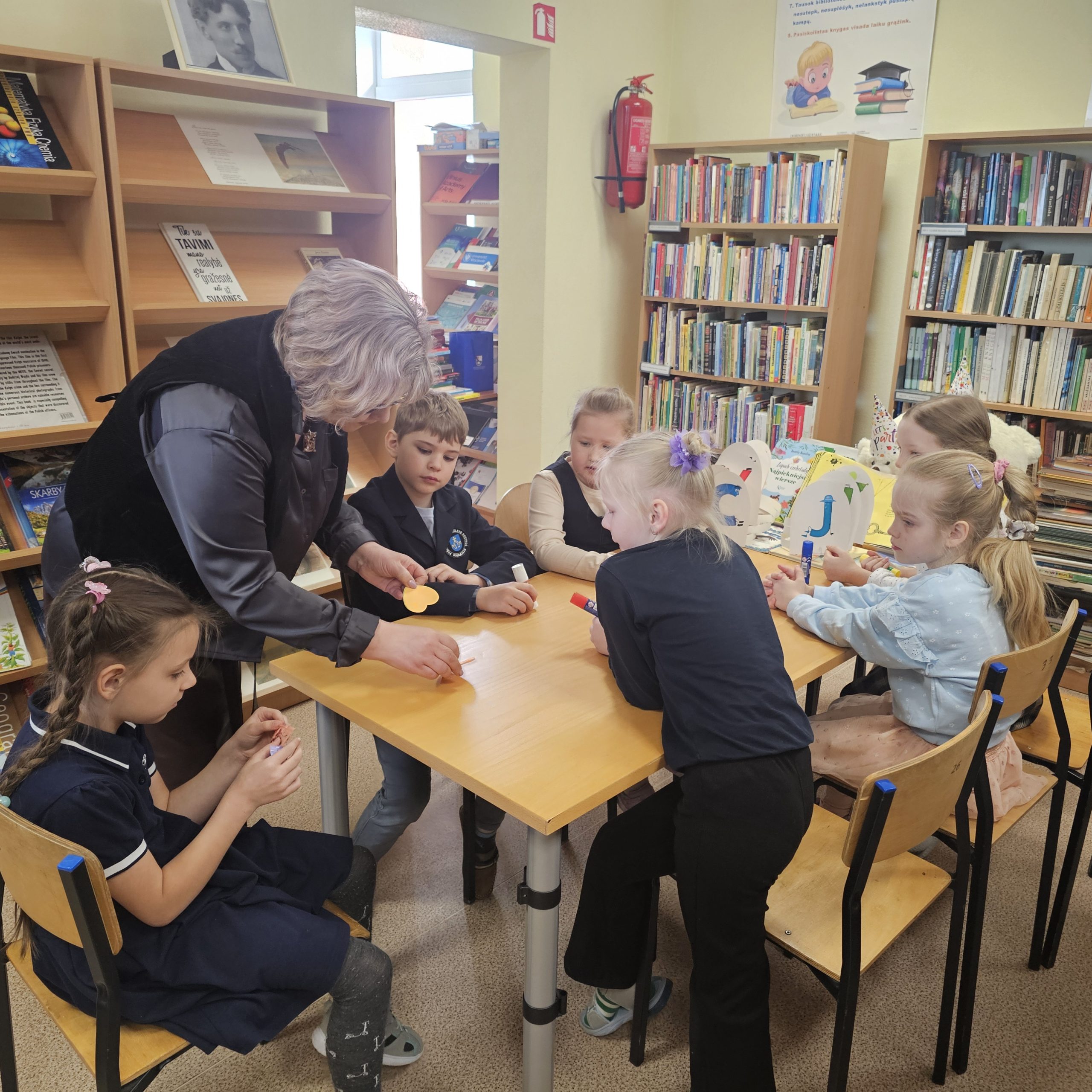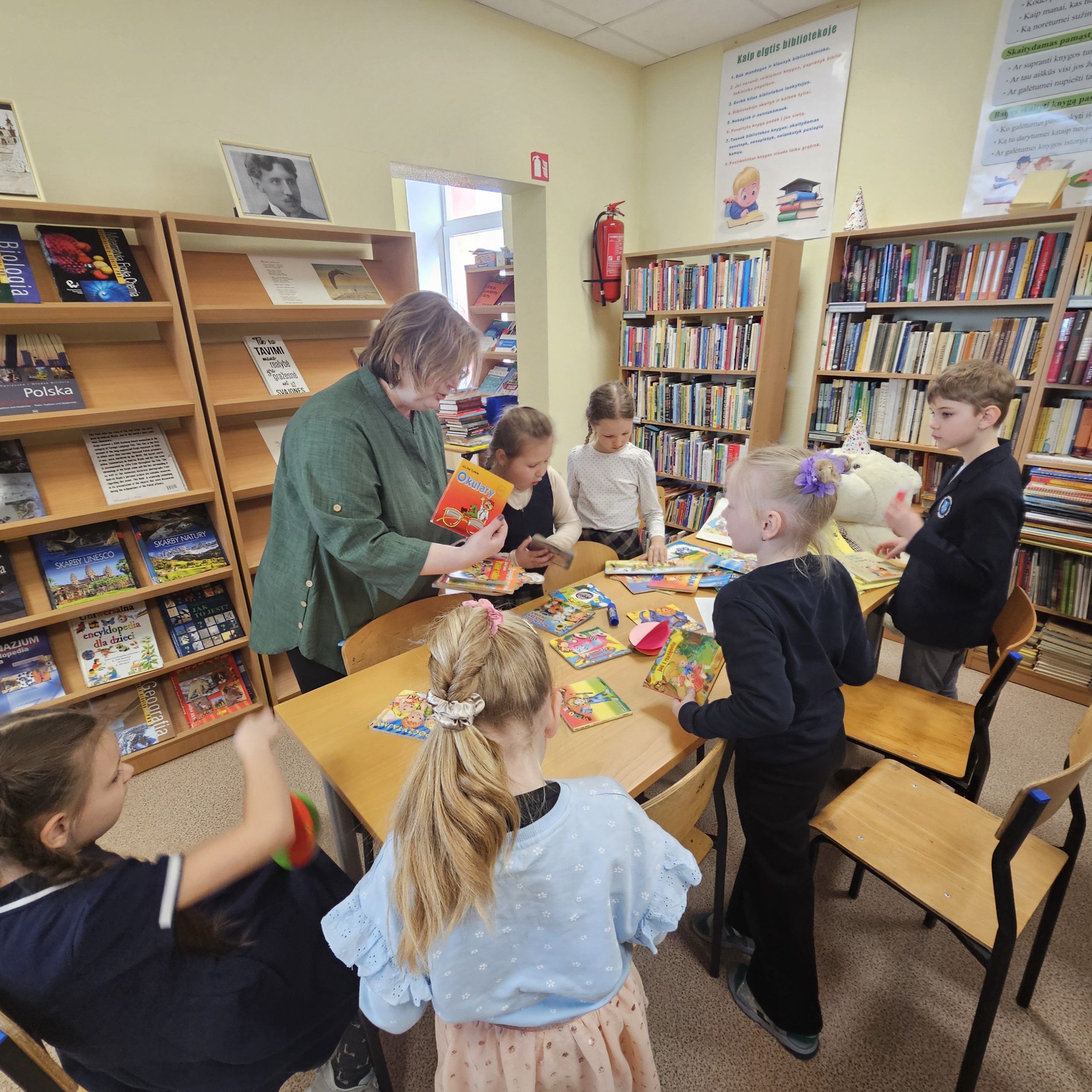 Podczas spotkania uczniowie odgadywali bajkowe zagadki, które sprawdziły ich znajomość bohaterów baśni i bajek. Zwiedzili również bibliotekę oraz dowiedzieli się, jak należy się w niej zachowywać. Poznali zasady wypożyczania książek i obiecali, że będą je czytać oraz szanować. Dodatkowo wykonali kolorowe pisanki z papieru.