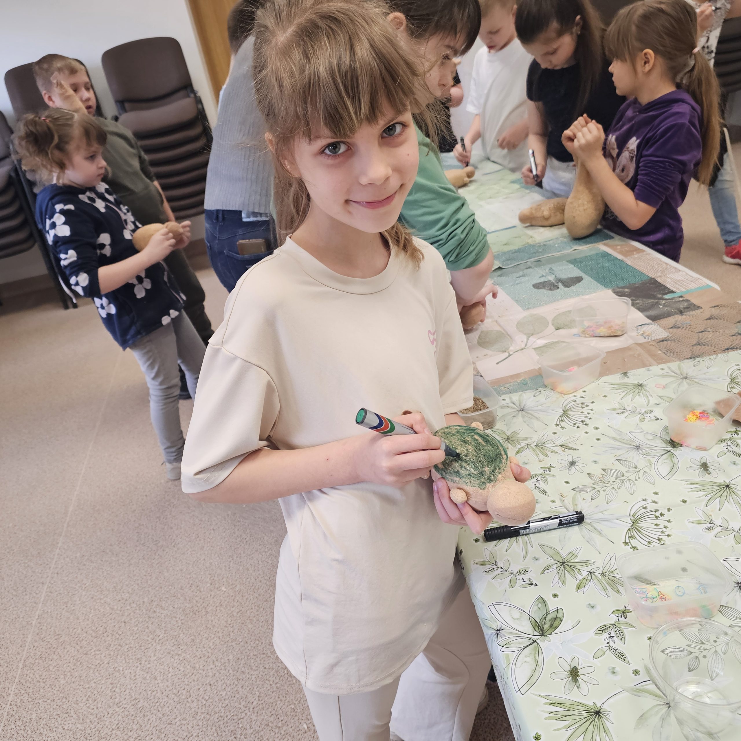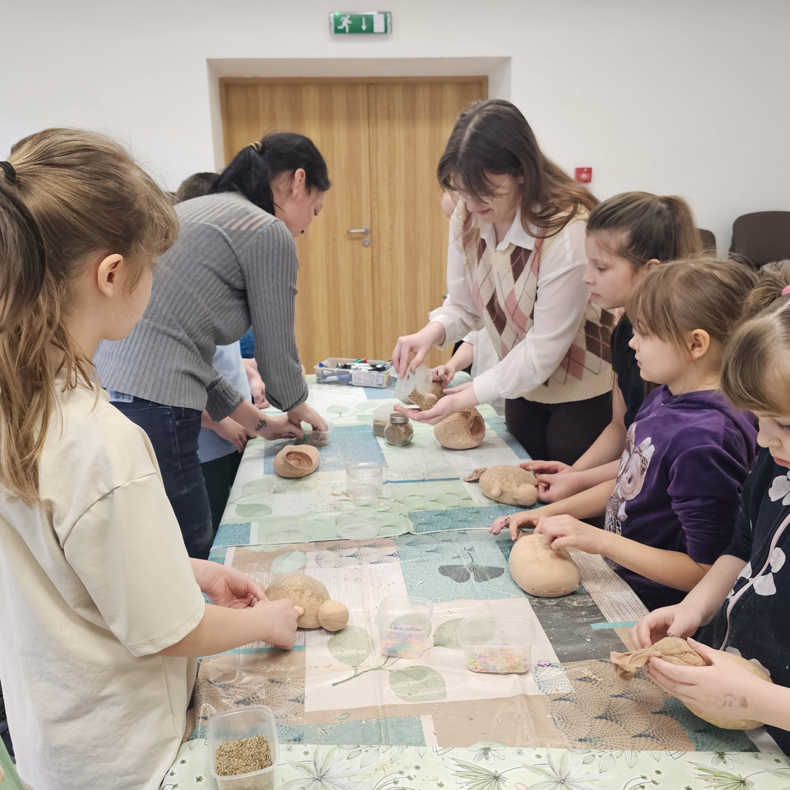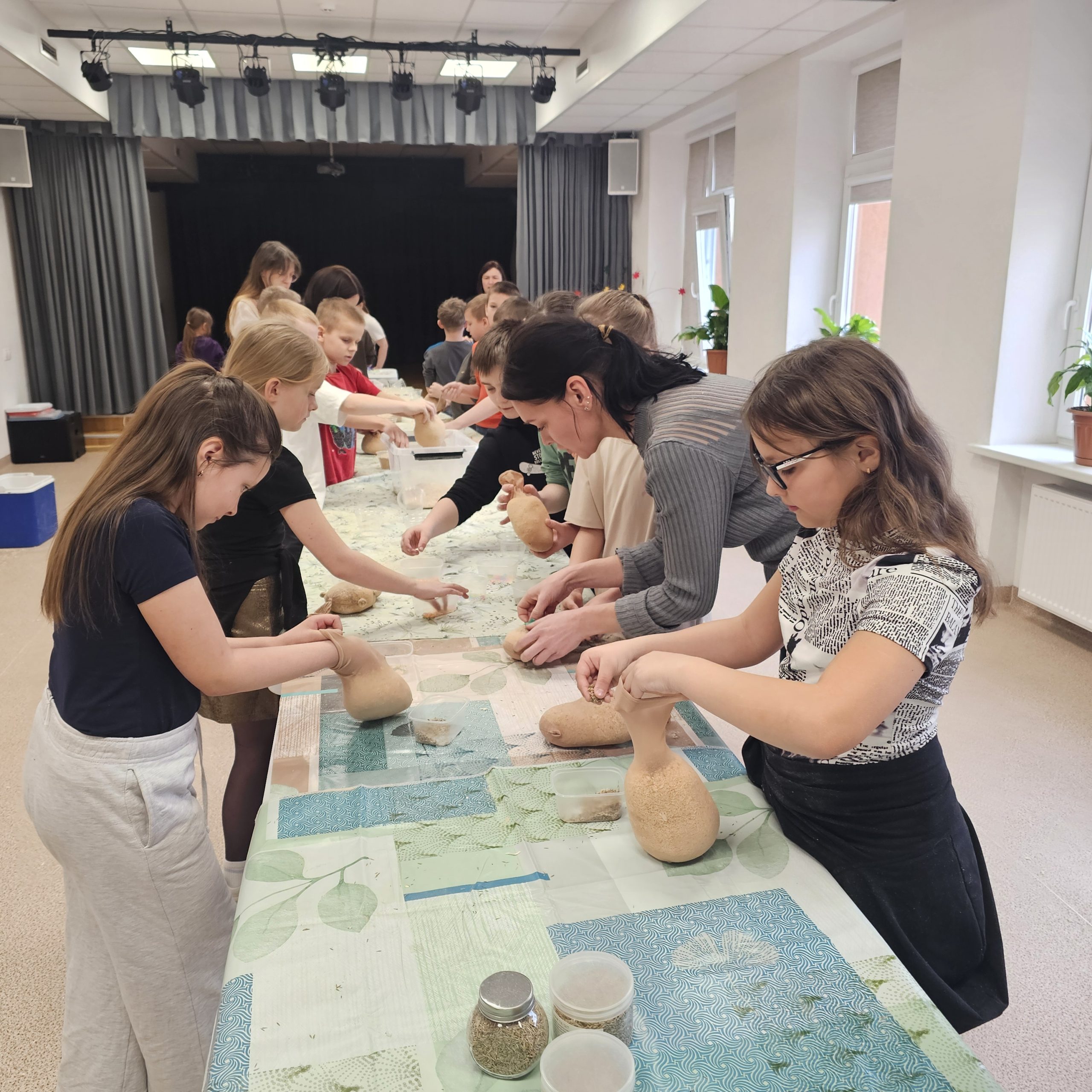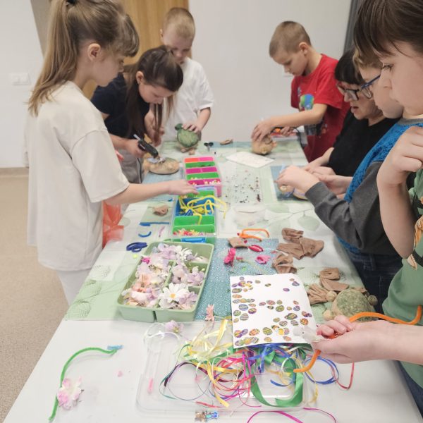Uczniowie klas początkowych wzięli udział w kreatywnych zajęciach edukacyjnych „Tworzenie Oliziukasa”. Malutki stworek, mający środek wypchany opiłkami i nasionkami trawy wielkanocnej przybierał najróżniejsze postacie w rękach twórczych uczniów. U jednych był to żółwik, u innych miś lub stworek z ziemniaczaną głową. A najważniejsze, że do świąt Wielkanocnych stworek będzie potrzebował skrupulatnej opieki i podlewania, aby do okresu malowania jajek urosła mu na głowie wielka czupryna z trawki wielkanocnej.