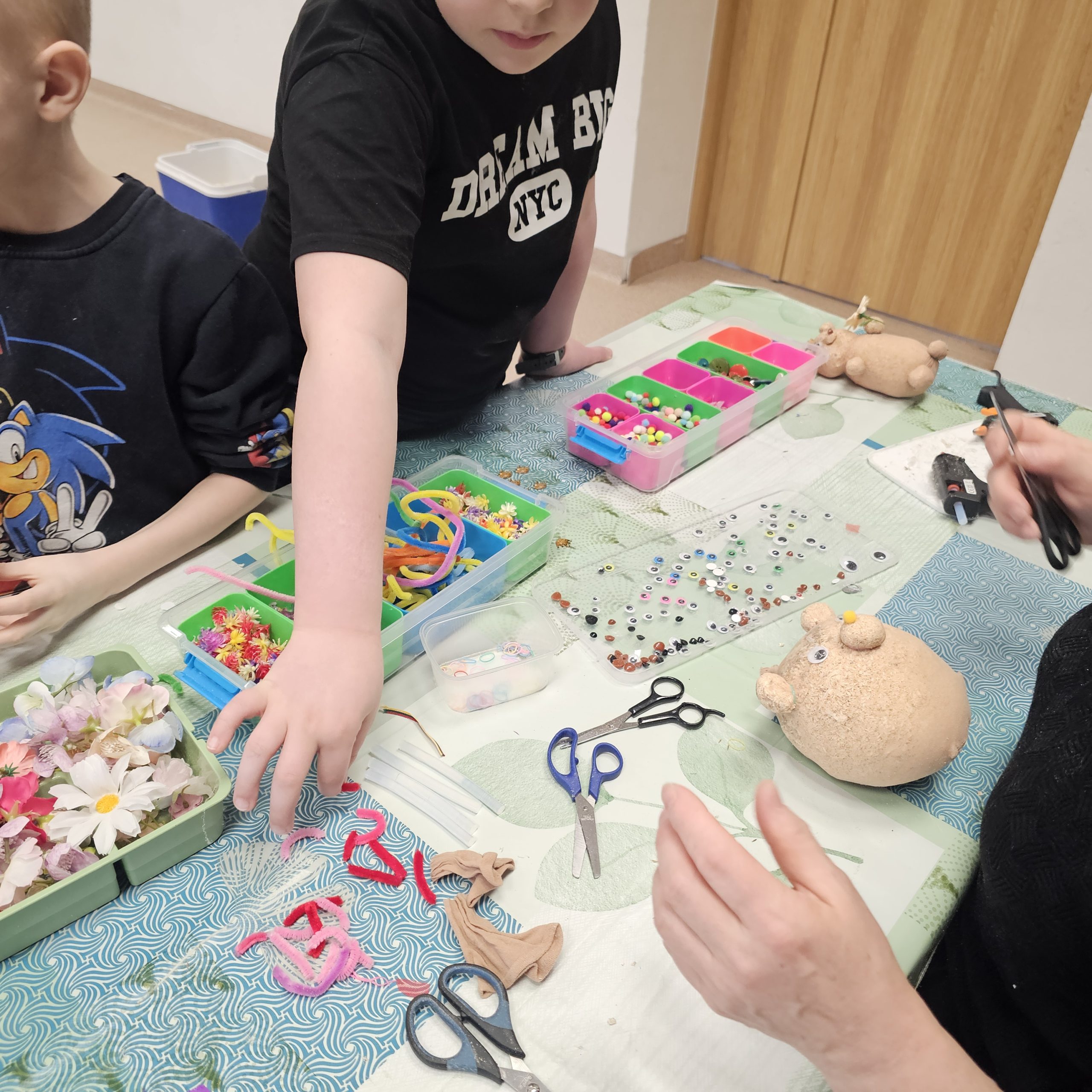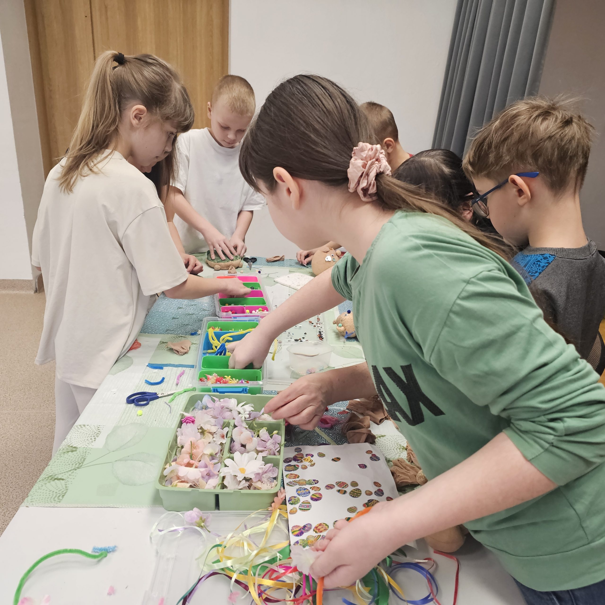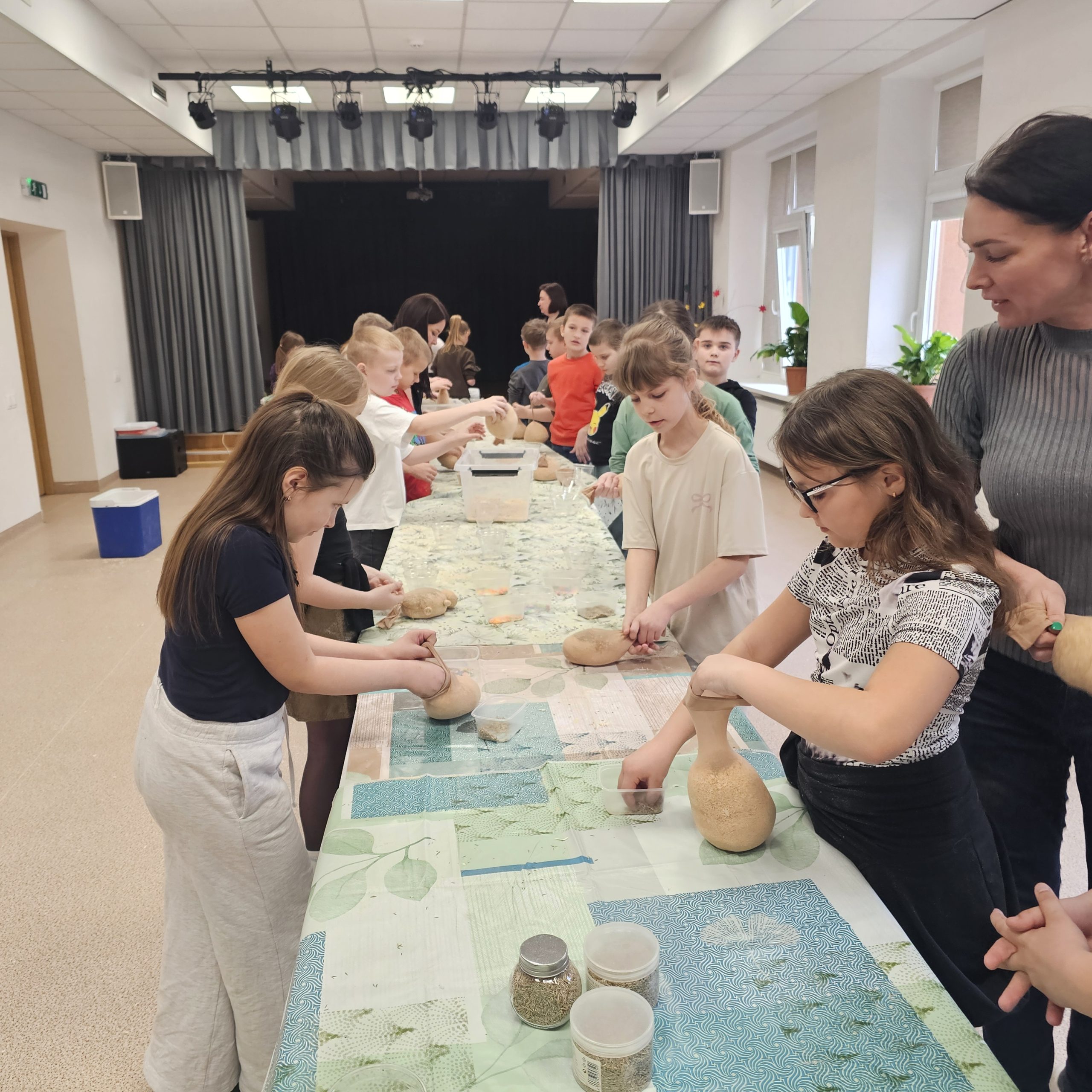 Uczniowie klas początkowych wzięli udział w kreatywnych zajęciach edukacyjnych „Tworzenie Oliziukasa”. Malutki stworek, mający środek wypchany opiłkami i nasionkami trawy wielkanocnej przybierał najróżniejsze postacie w rękach twórczych uczniów. U jednych był to żółwik, u innych miś lub stworek z ziemniaczaną głową. A najważniejsze, że do świąt Wielkanocnych stworek będzie potrzebował skrupulatnej opieki i podlewania, aby do okresu malowania jajek urosła mu na głowie wielka czupryna z trawki wielkanocnej.